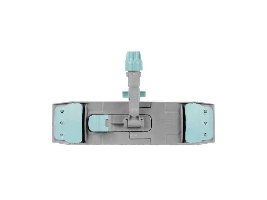 Držák klapky s blokovým systémem a 360° otočným spojem ve 40 cm šířkové verzi od Kärcher. Držák mopu je ideální pro použití se všemi rukojeťmi o průměru otvoru mezi 18 mm a 23 mm, jako jsou naše hliníkové a teleskopické rukojeti.