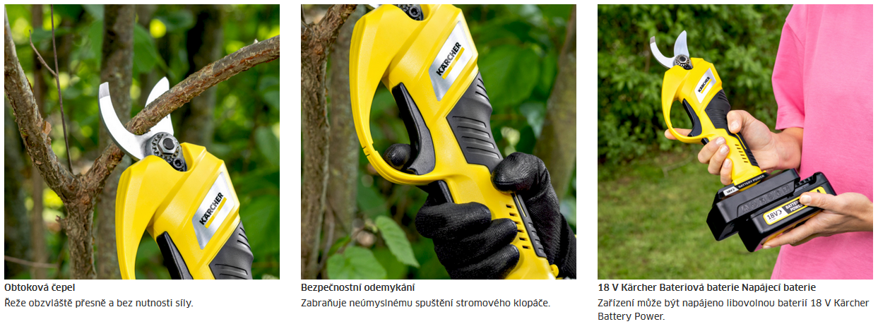 Snadná údržba stromů s akumulátorovou energií – větve a větvičky o průměru až 2,5 cm se Kärcherovu akumulátorovému pokažiníku stromů nevyhovují. Díky své výkonné bypassové čepeli je řezání obzvláště přesné a nevyžaduje žádné úsilí. Jemné prořezávání také podporuje zdravý růst rostlin. Díky tomu je řezání a prořezávání stromů a dřevin jednodušší a bezpečnější. Pohodlná práce nad hlavou: s volitelným teleskopickým rozšířením (není součástí dodávky) je práce ve výšce až 3,5 metru také bez námahy a pohodlná.